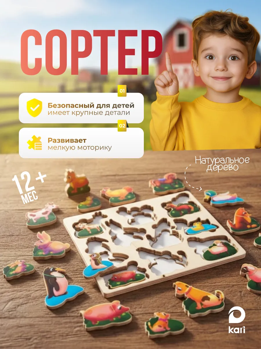 Развивайте наблюдательность и любознательность ребенка с помощью этого деревянного сорта Животные. Это полезная игрушка для развития мелкой моторики и творчества. Сортировка животных по цвету и форме поможет ребенку улучшить свои навыки внимания и памяти. Подойдет для детей от 1 до 3 лет.