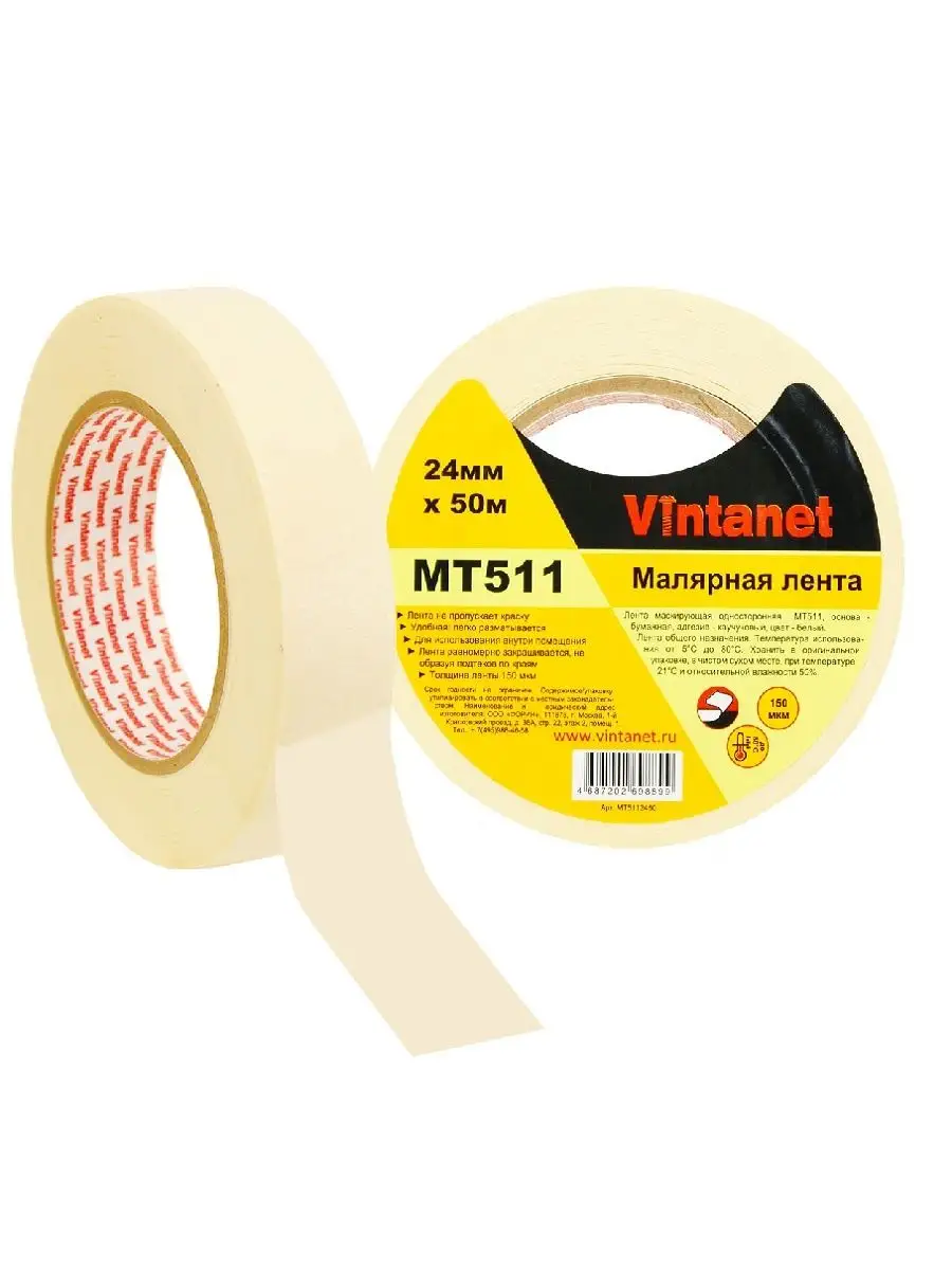 Малярный скотч универсальный до 80°С 150 мкм, 24мм х 50м. ООО ФОРИН
