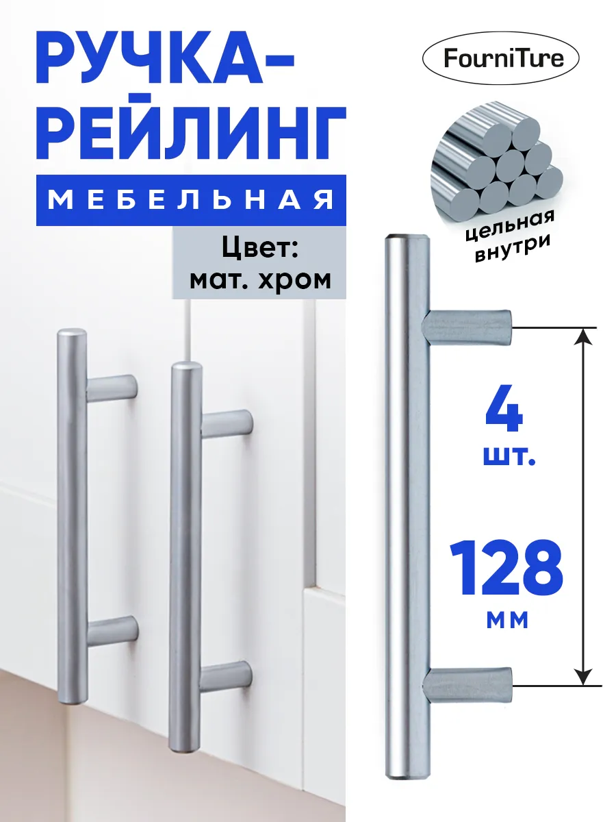 Ручки для мебели 128 мм Рейлинг Матовый хром 4 шт. FourniTure