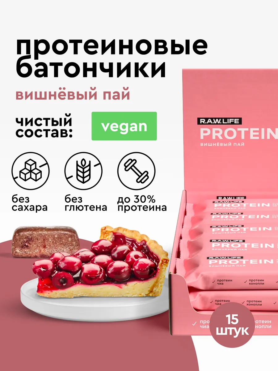 Протеиновые батончики без сахара Вишневый пай 15 шт. R.A.W.LIFE