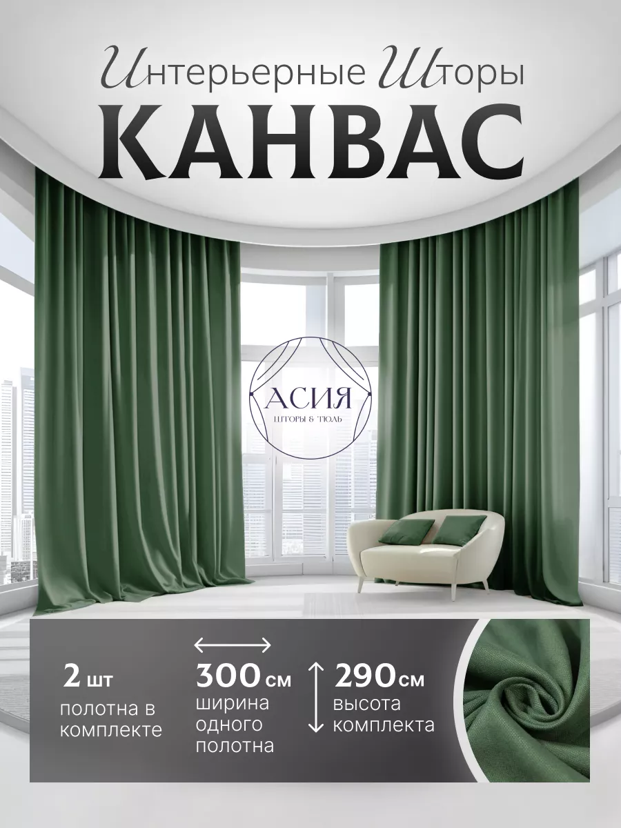 Шторы канвас в спальню комплект 2 шт по 300 на 290 см. Асия