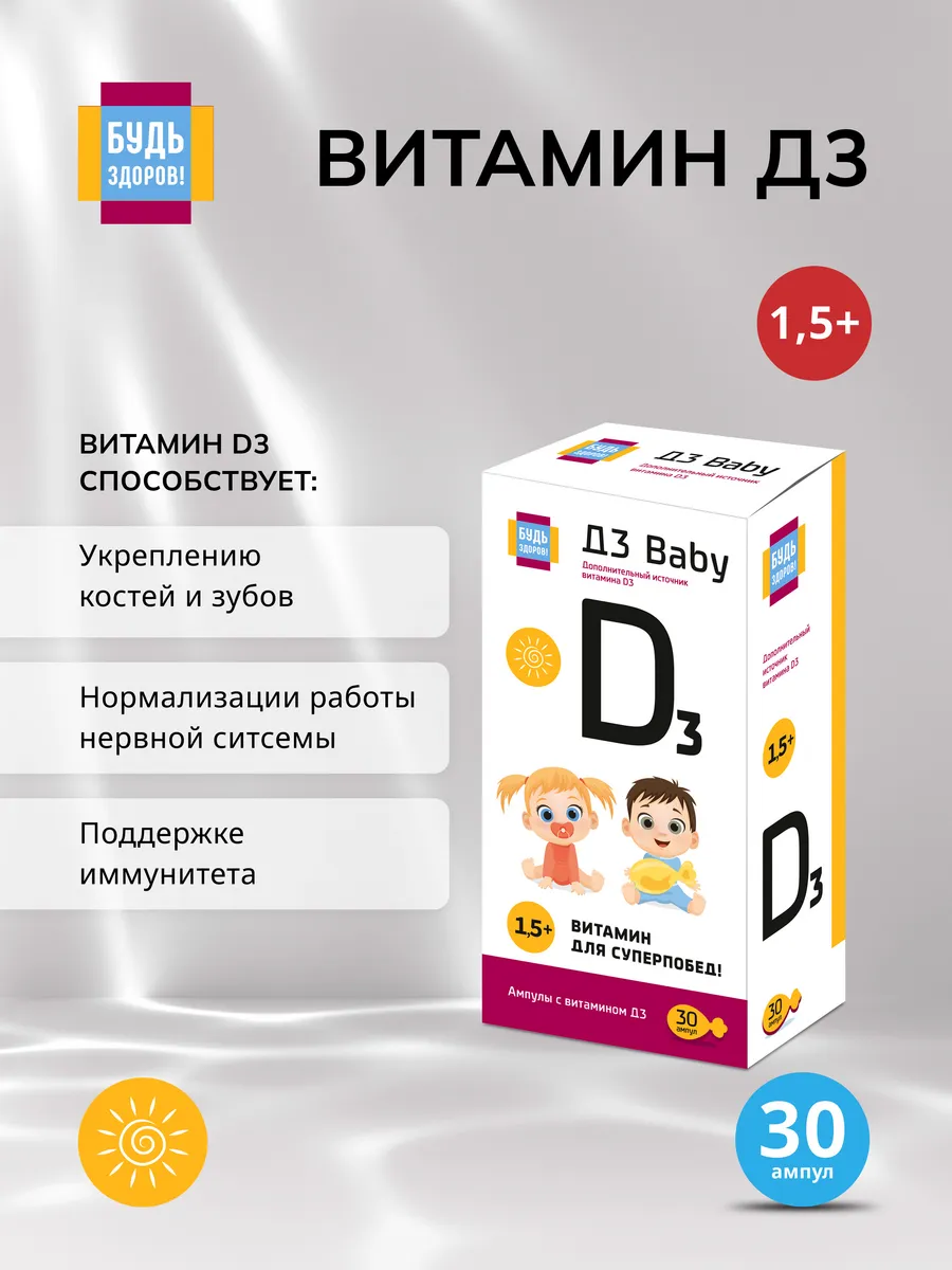 Для здорового развития вашего малыша необходимы все необходимые витамины и микроэлементы. Витамин Д3 Baby — это удобная ампулы для приема внутрь, содержащие необходимую дозу витамина Д3 для малышей. Упаковка включает в себя 30 ампул по 0,55 мл. Это идеальный вариант для регулярного приема витамина Д3, который может помочь вашему малышу развиваться здоровым и крепким.