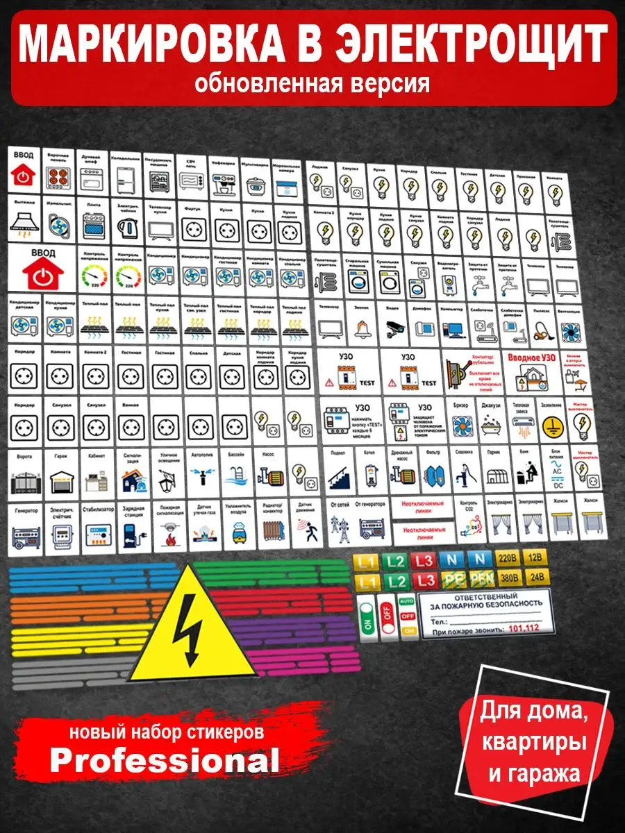 Набор наклеек для маркировки электрощитов. ФотоLab