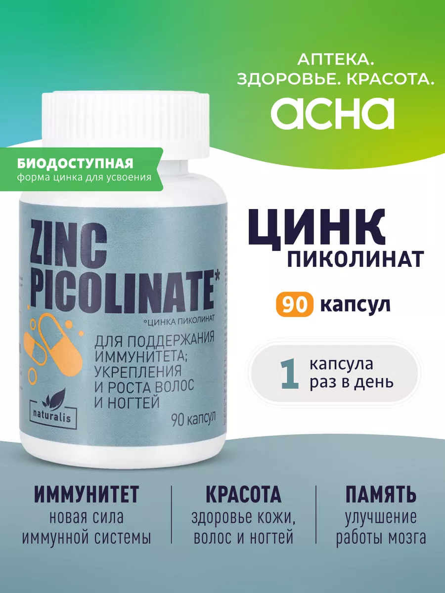 Цинка пиколинат 25 мг капсулы, 90 шт. Аптека АСНА