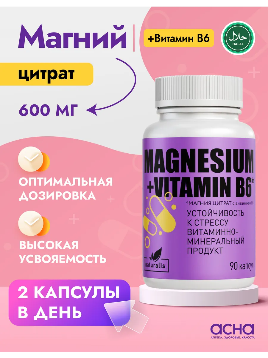 Магний цитрат и витамин в6. Аптека АСНА