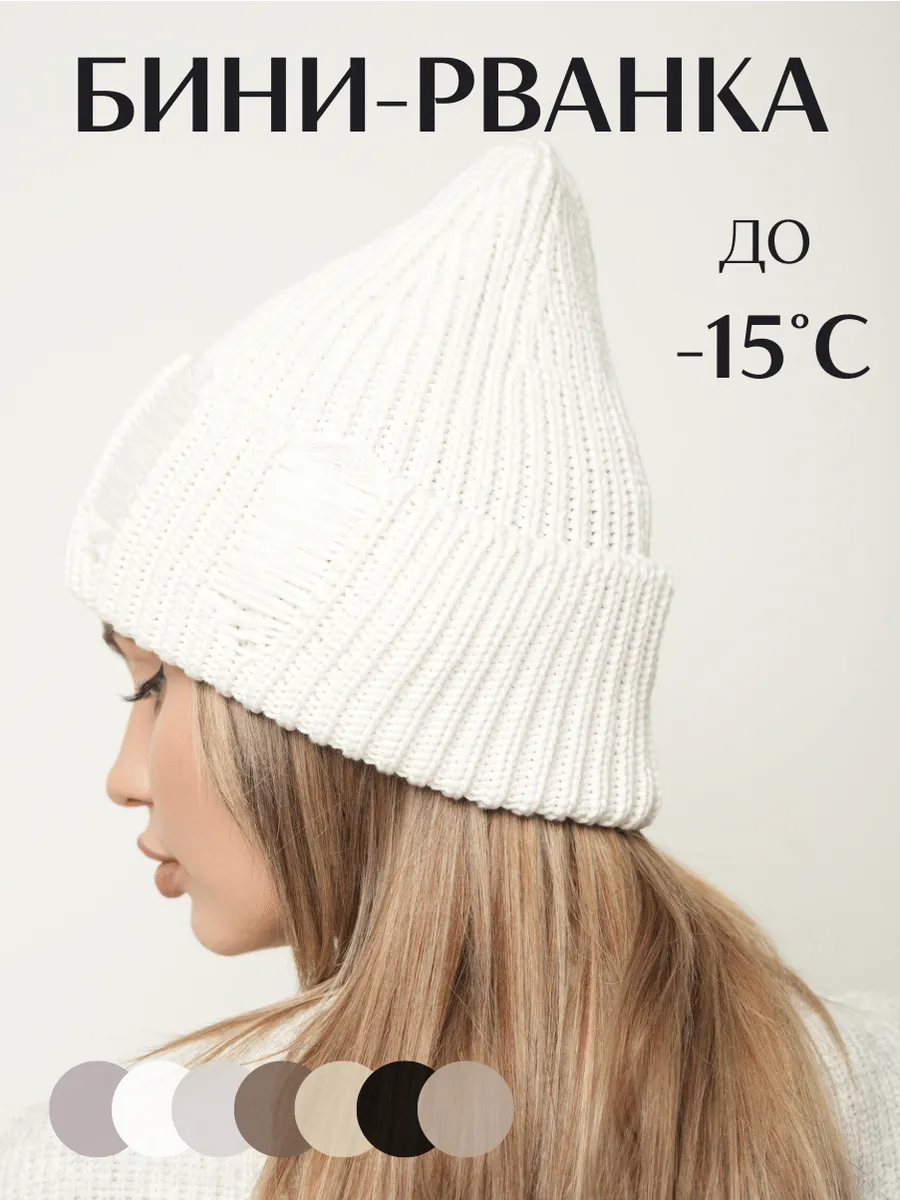 Шапка зимняя вязаная бини рваная. Alisa.S