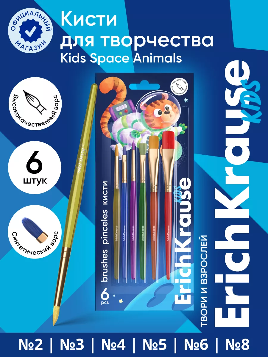 Кисти для рисования Space Animals, синтетика, 6 штук. Официальный магазин ErichKrause®