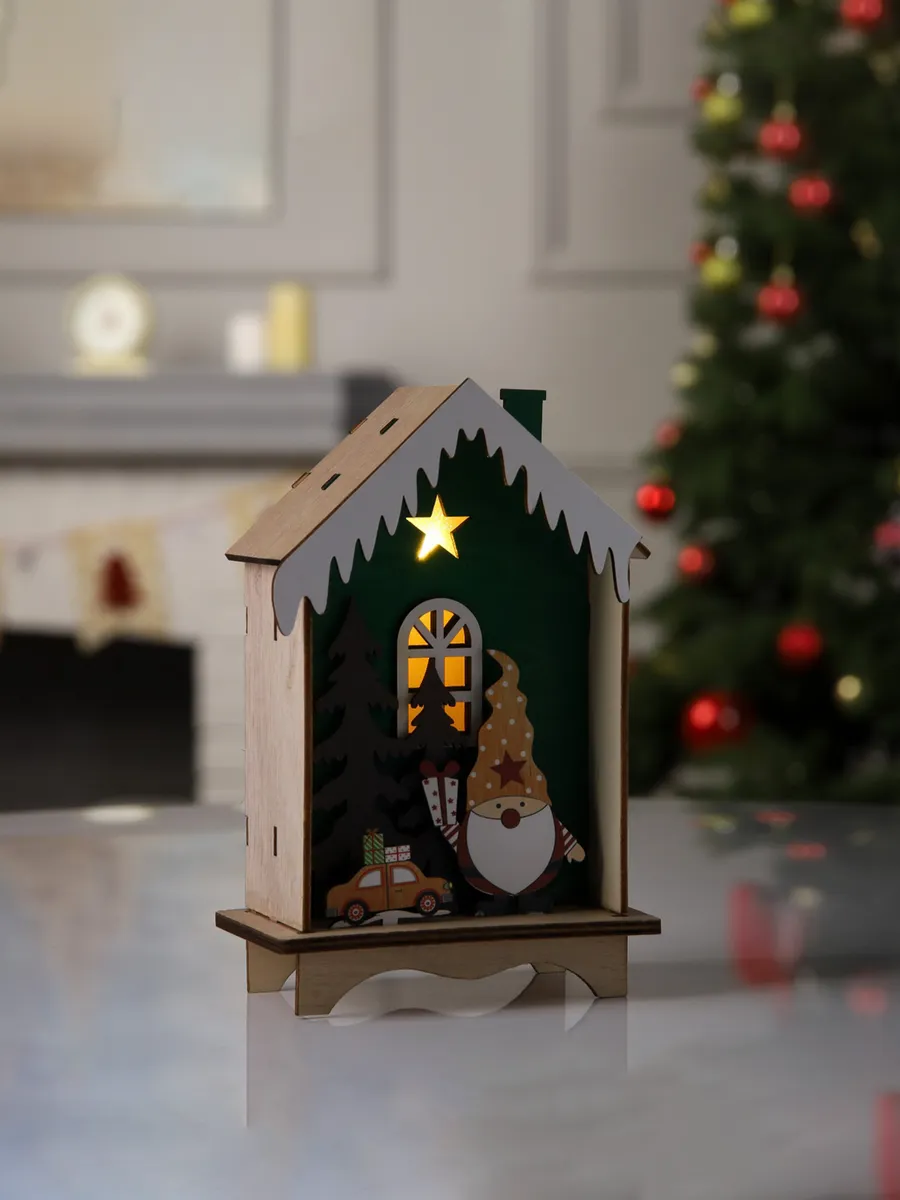Новогоднее украшение «Зелёная хижина», дерево, теплый белый. KoroBoom Shop