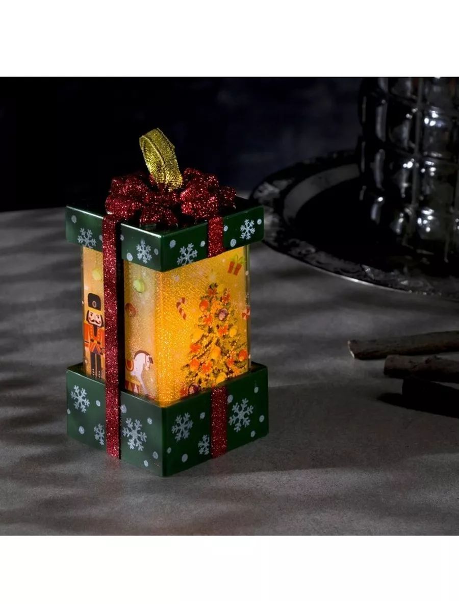 Новогоднее украшение Зелёный подарок с ёлкой, эффект пламени. KoroBoom Shop