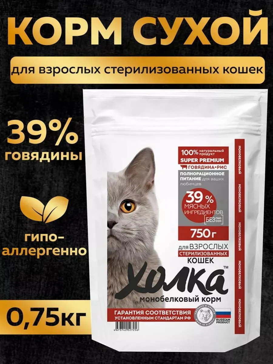Корм для стерилизованных кошек гипоаллергенный говядина 750г. Хорошие продукты