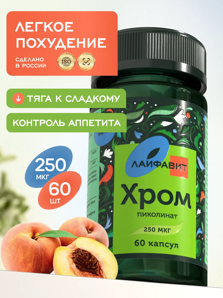 Пиколинат хрома для похудения и контроля аппетита 250 мкг. Лайфавит