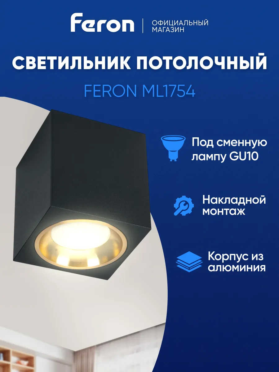 Главная / Освещение / Светильник потолочный спот GU10. Feron, официальный магазин