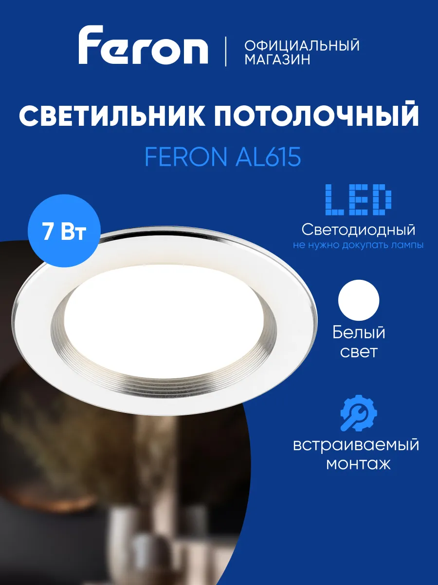 Светильник потолочный встраиваемый светодиодный. Feron, официальный магазин