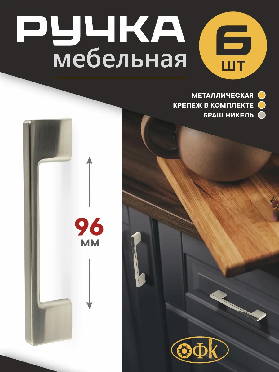 Ручки для мебели 96 мм Металлические 6 штуки. Озёрская Фурнитурная Компания