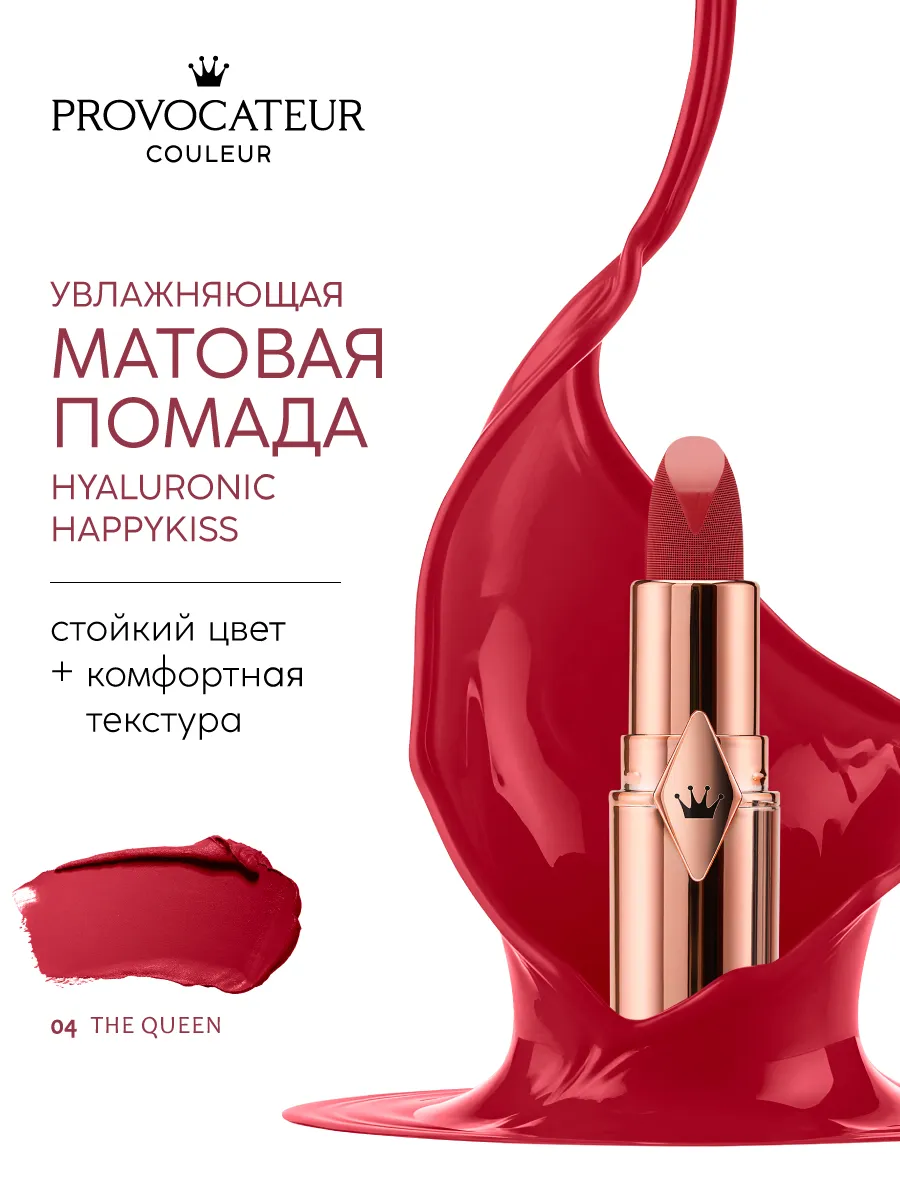 Помада Happy Kiss 04 The Queen — идеальный выбор для тех, кто ценит мягкость и увлажнение губ. С матовым финишем, этот продукт обеспечивает длинное но нежное сохранение цвета, а увлажняющие свойства помогают сохранить губы мягкими и здоровыми. Подойдет для ежедневного использования и может быть идеальным подарком для любимой женщины.