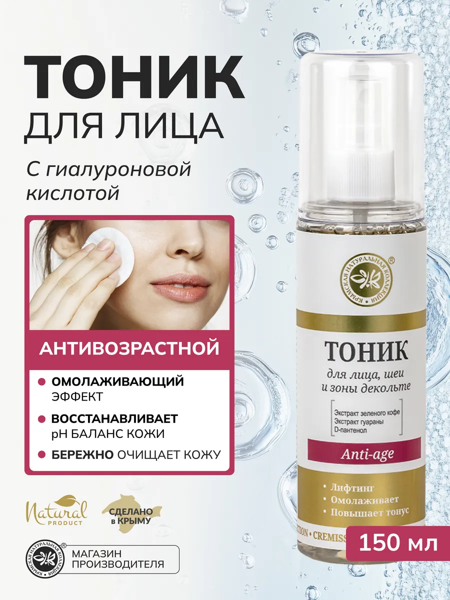 Кремообразный тоник для лица омолаживающий с гиалуроновой кислотой. Предназначен для увлажнения и тонизирования кожи лица. Включает в себя гиалуроновую кислоту, которая помогает сохранить природную влажность кожи. Используйте для ежедневного ухода за кожей. Подходит для сухой и чувствительной кожи.