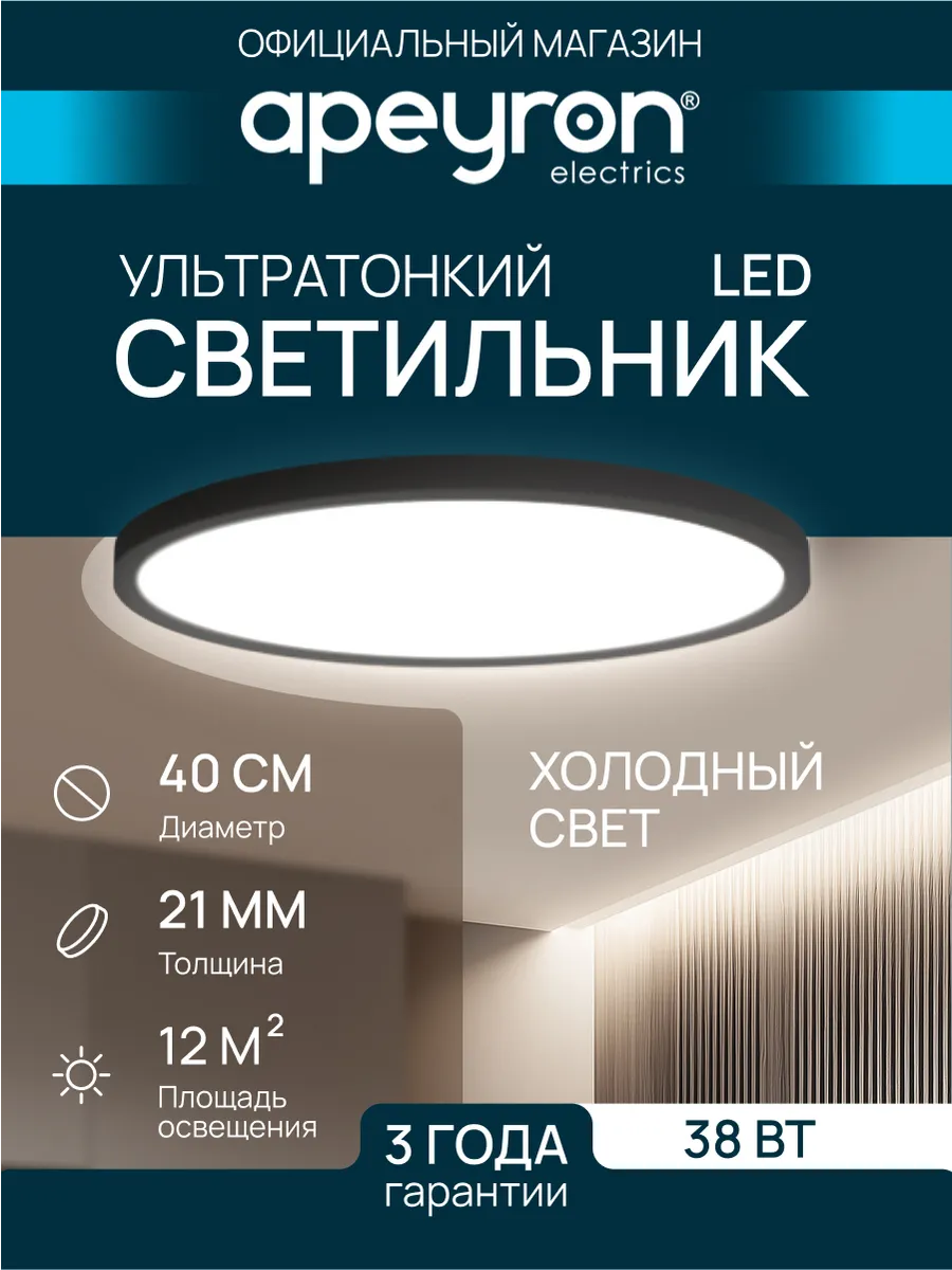 Светильник потолочный светодиодный 38Вт, 40см Спот 6500К. Apeyron