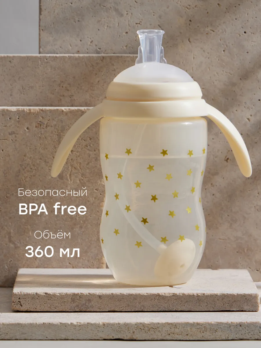 Поильник непроливайка с трубочкой и ручками. Happy Baby