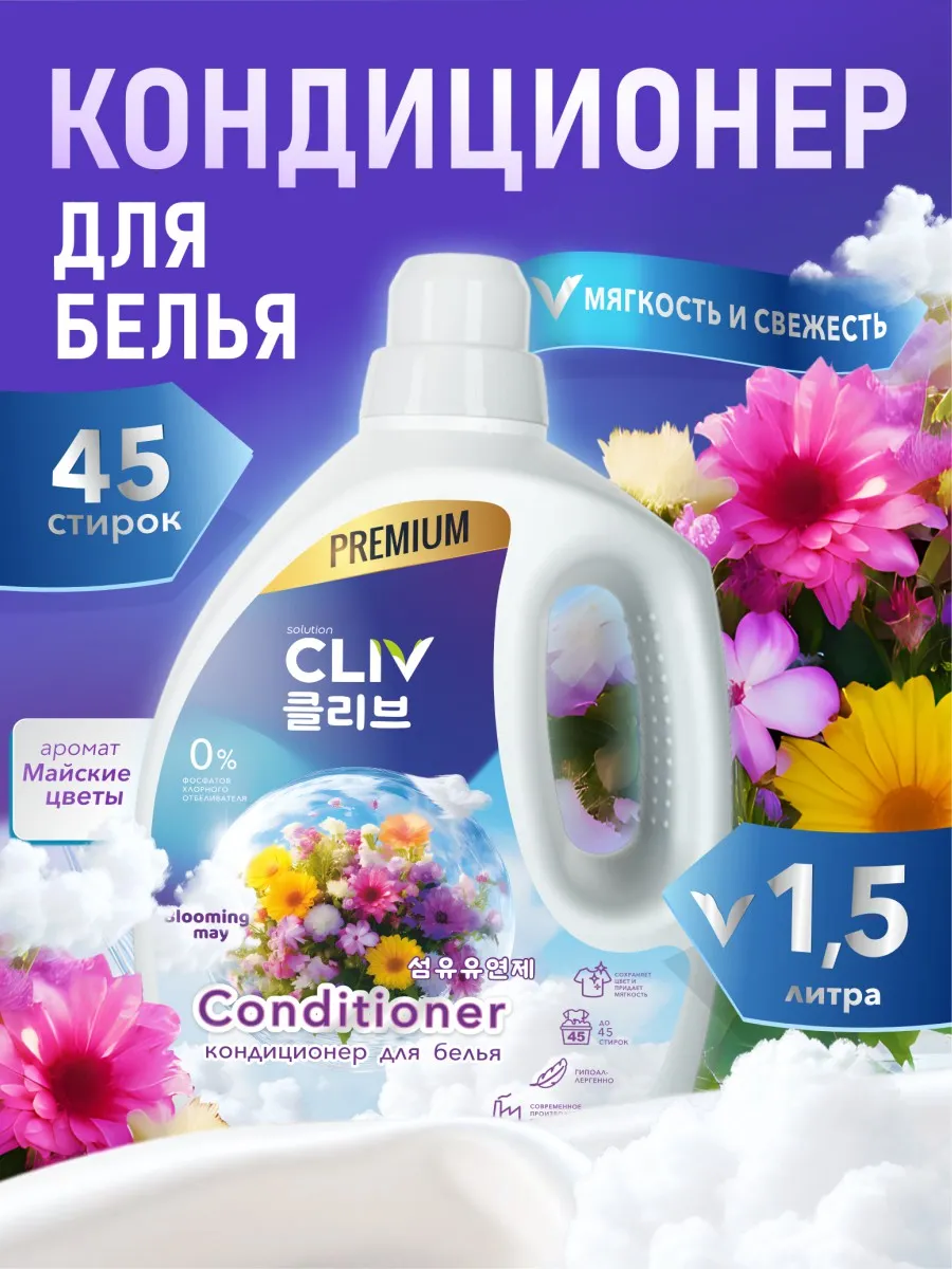 🔥 По акции «Рубли за отзыв» вы сможете вернуть 200 рублей на баланс Wildberries, если оставите отзыв о товаре «Кондиционер концентрат для стирки Майские цветы 1,5л. CLIV Solution».