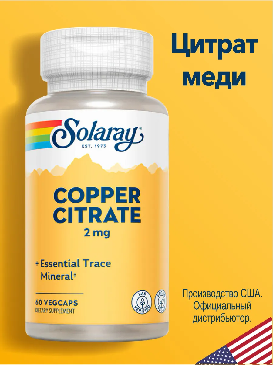 Медь цитрат 2 мг Copper citrate 60 капсул. ZEOX