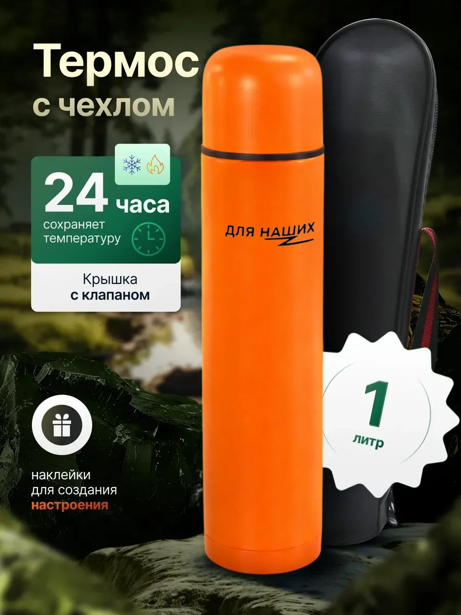 Термос для чая и кофе 1 л металлический с чехлом оранжевый. SteamPlus Official