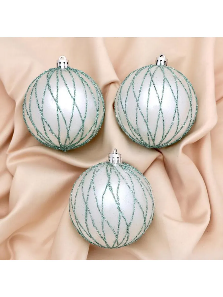 Шары Геометрические полосы 3 шт, 8 см, пластик, бело-зелёный. KoroBoom Shop