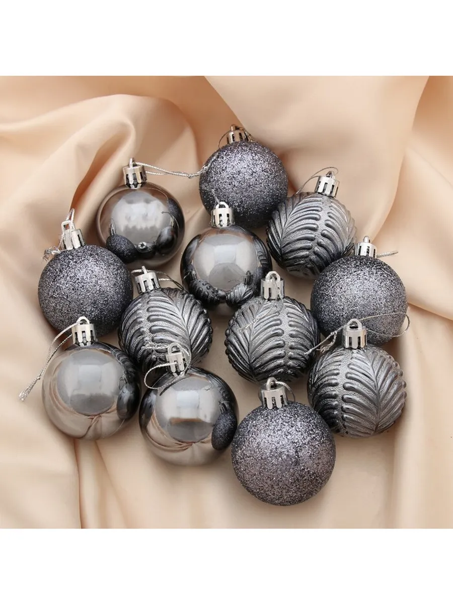 Набор шаров «Новогодние ветви», 5 см, 12 шт, пластик, серый. KoroBoom Shop