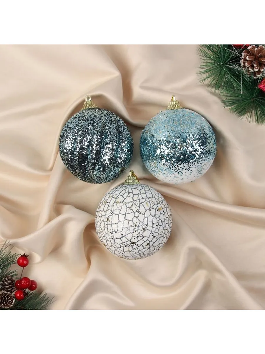 Набор шаров Ксавье Ассорти, 8 см, 3 шт, пластик, бело-синий. KoroBoom Shop