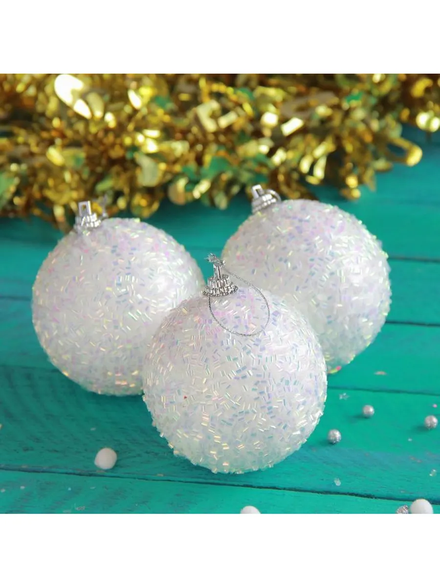 Набор шаров «Пушинка. Бисер», 6,5 см, 6 шт, пластик, белый. KoroBoom Shop
