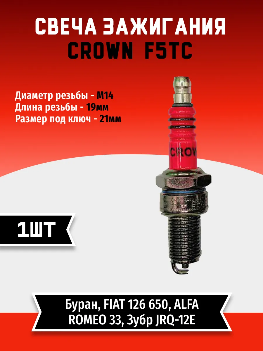 Свеча зажигания CROWN F5TC (1 шт). TEHNO-ZONA.RU