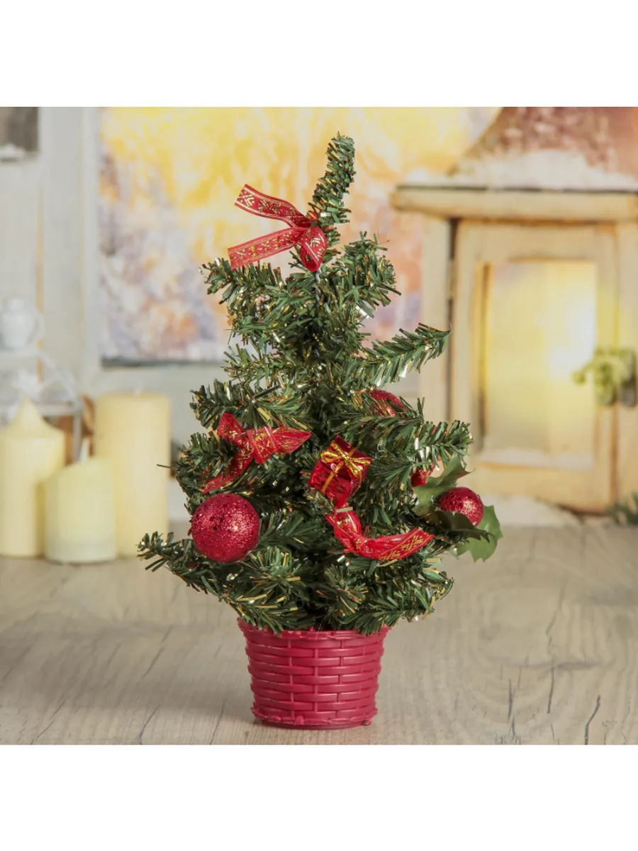 Искусственная новогодняя ель Шарики 25 см, настольная ёлочка. KoroBoom Shop