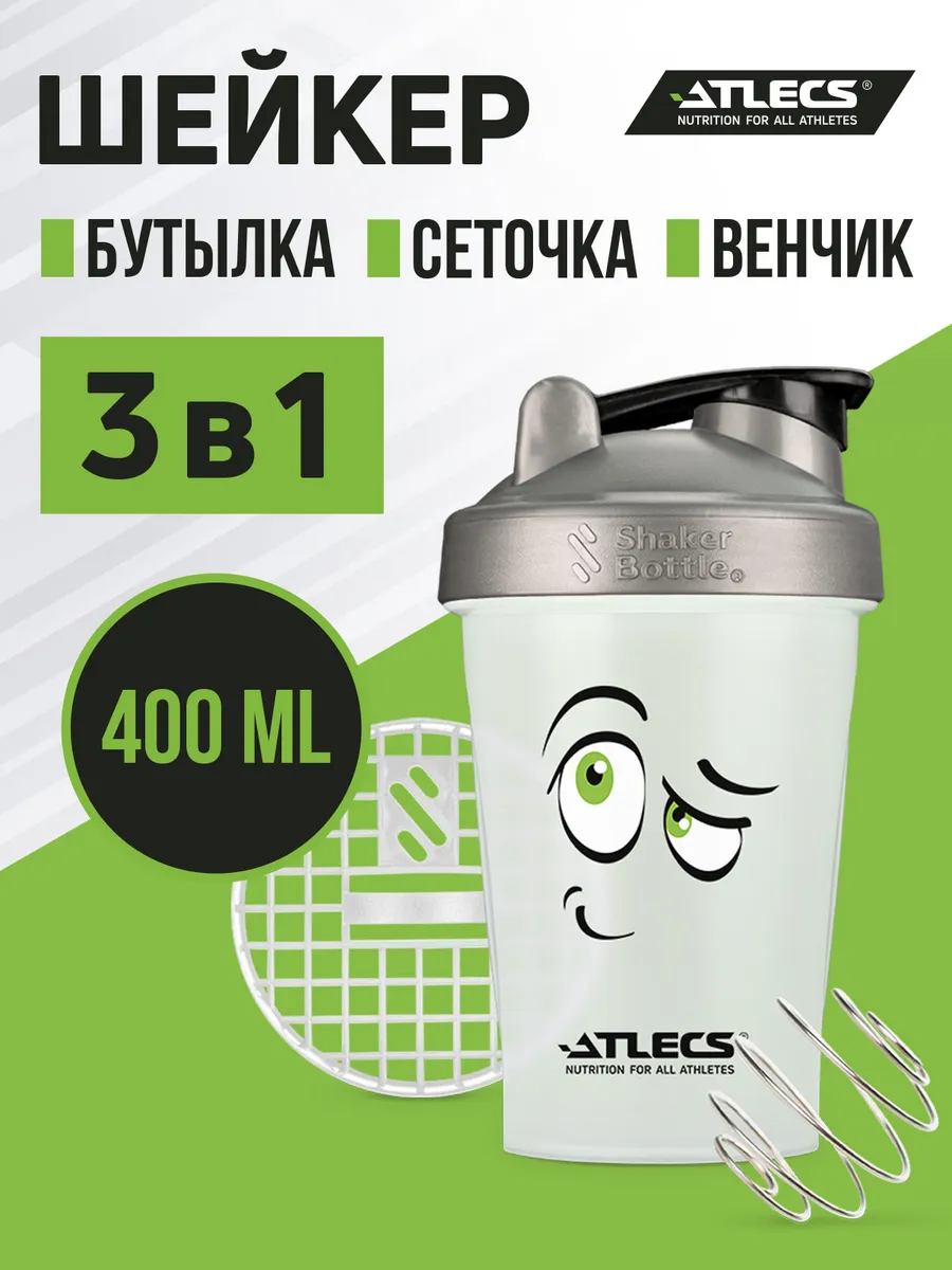 Шейкер спортивный для протеина с сеткой 400 мл белый. Brutalshop