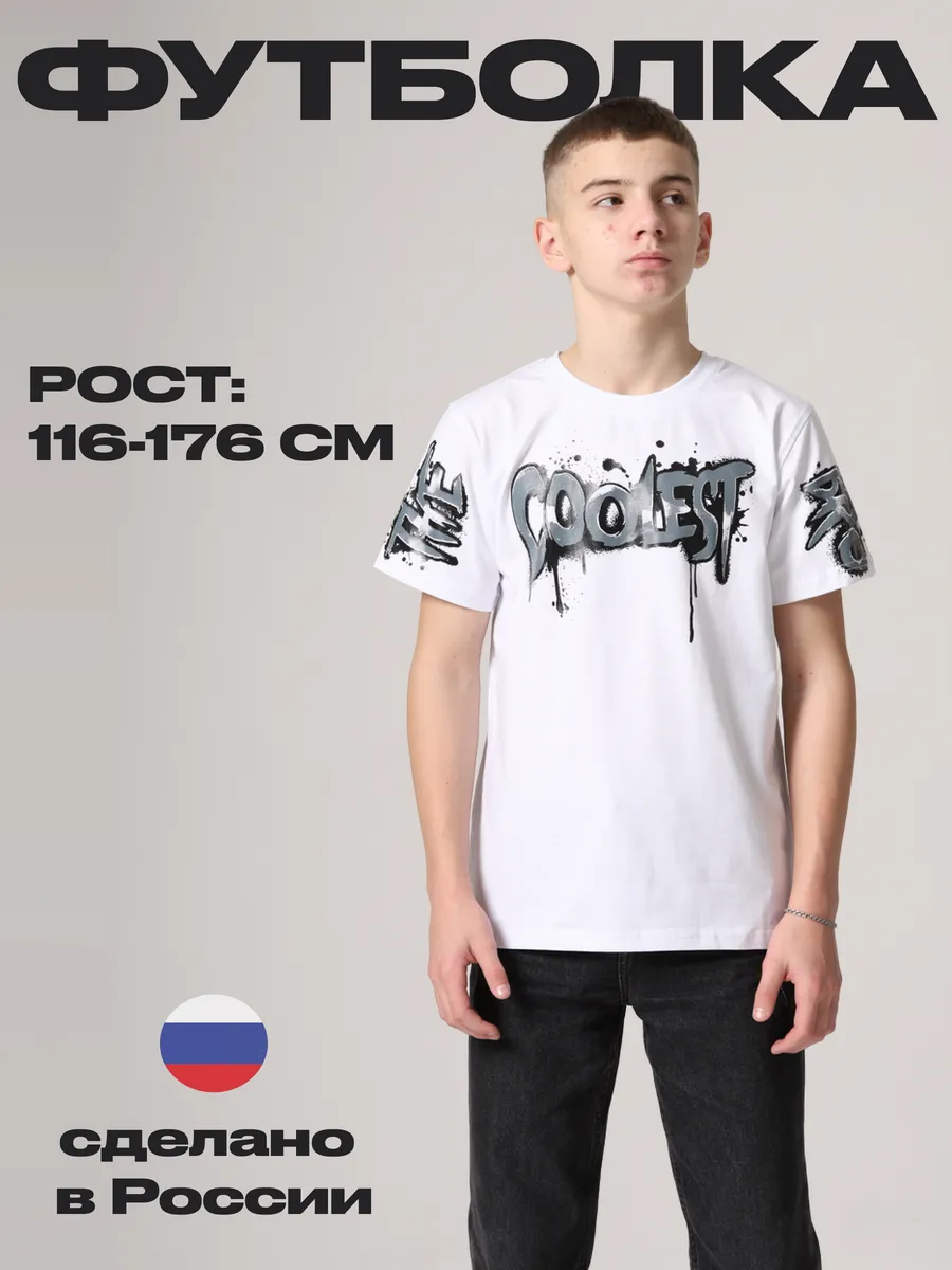 Футболка однотонная хлопковая белая с принтом для подростка. unoStory