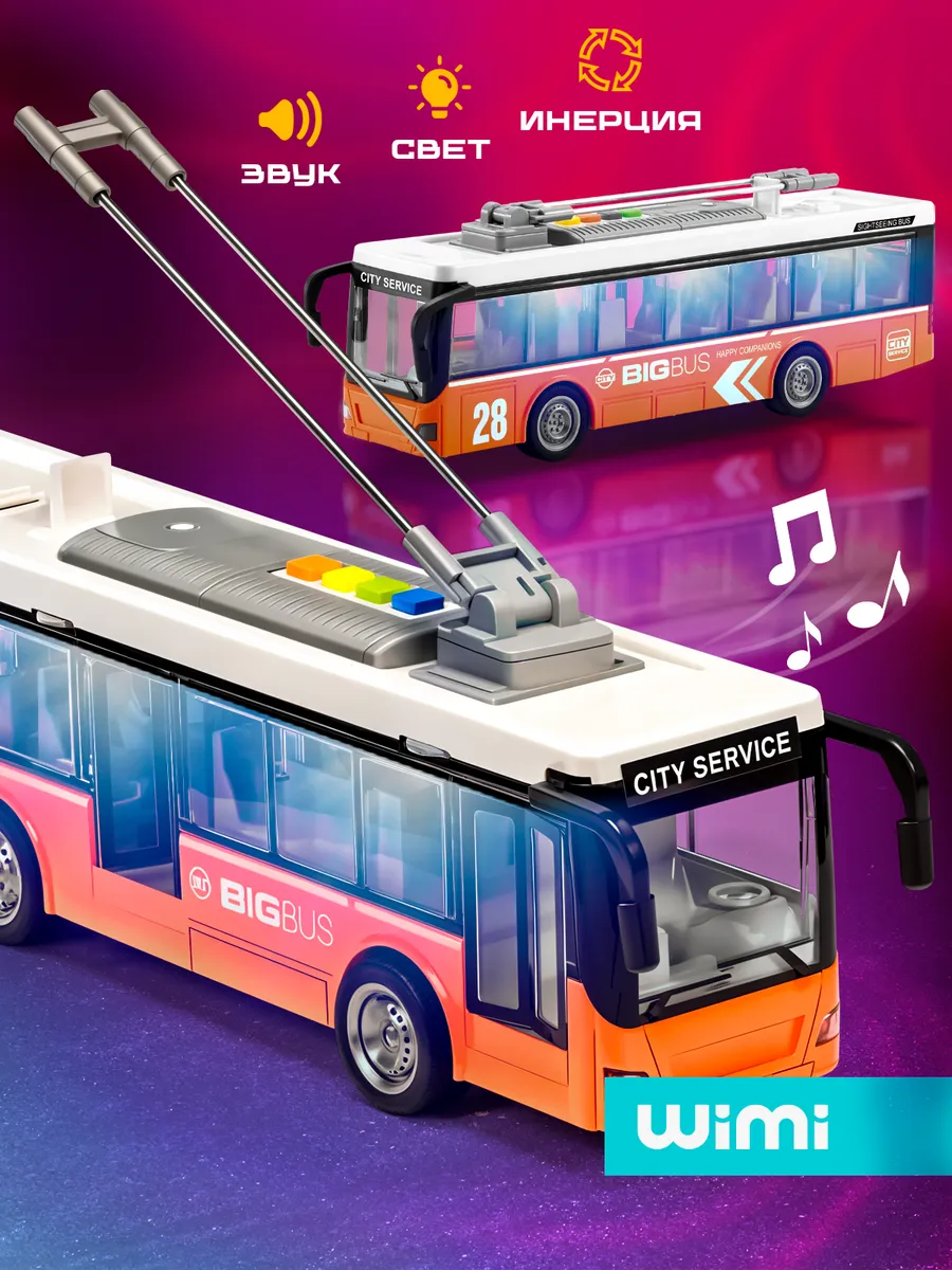 Главная / Игрушечный транспорт / Большой троллейбус инерционный. JUST WOW!