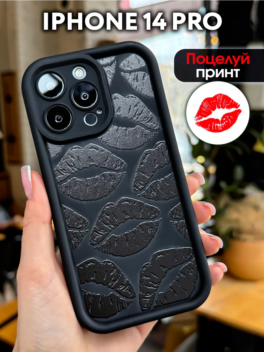 Чехол на iphone 14 PRO c поцелуями. 1A-Case