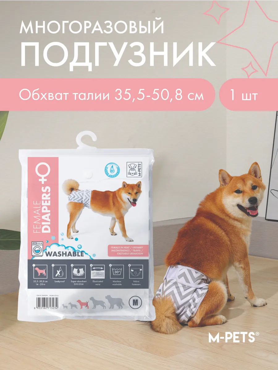 Подгузник многоразовый для собак, размер M, 35,5-50,8 см. Всё для животных