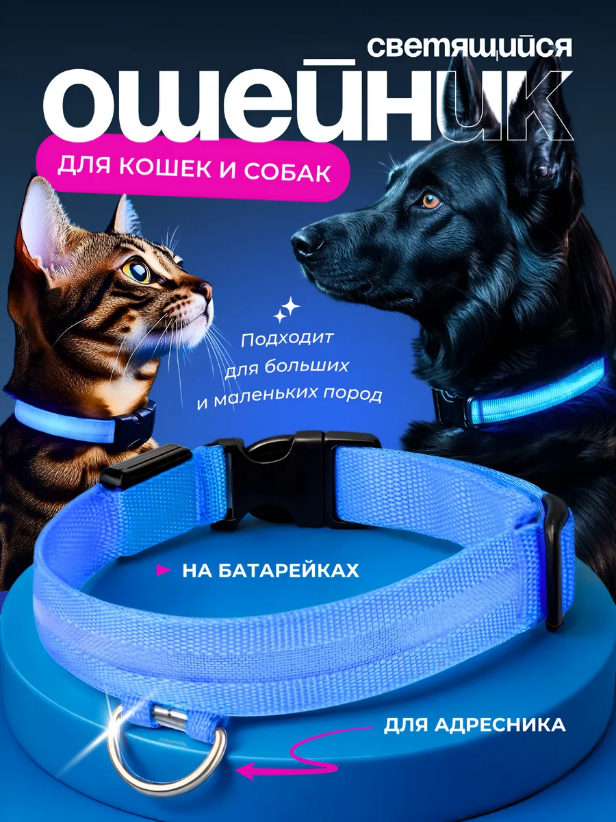 Светящийся ошейник для собак и кошек регулируемый нейлоновый. ВсеОКиТочка
