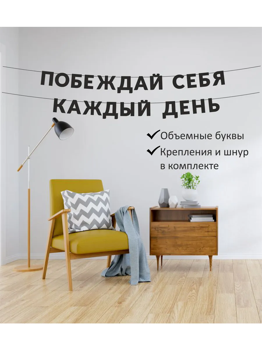 🔥 По акции «Рубли за отзыв» вы сможете вернуть 200 рублей на баланс Wildberries, если оставите отзыв о товаре «Гирлянда надпись на стену «Побеждай себя каждый день». Home Decor».