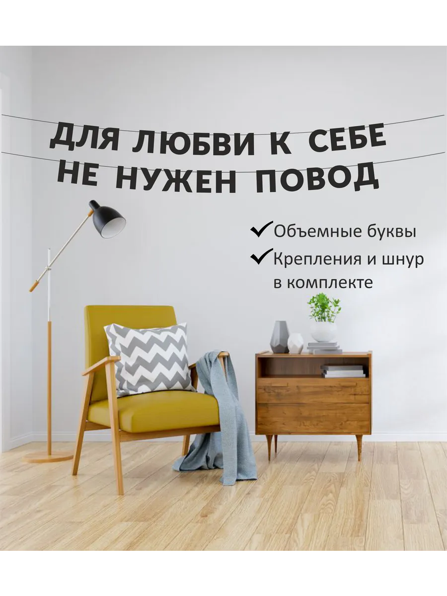 Гирлянда надпись на стену «Для любви к себе не нужен повод». Home Decor