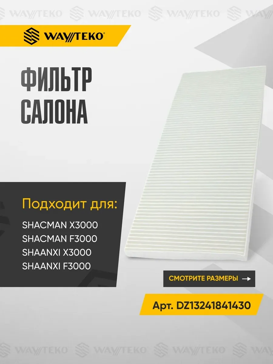 Главная / Отопление и кондиционирование / Фильтр салона SHACMAN Арт. DZ13241841430. WAYTEKO