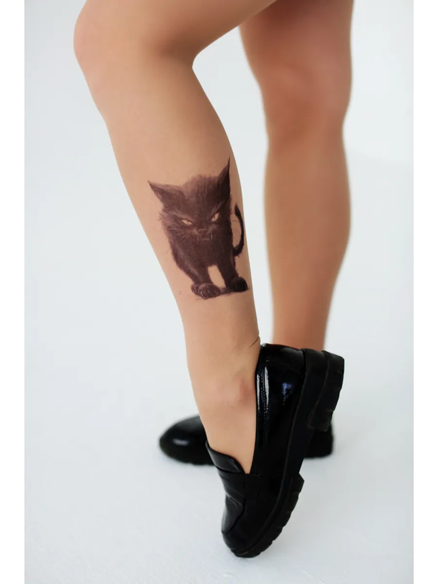 Колготки с рисунком кошек созданы для тех, кто любит кошек и хочет добавить немного экстрима в свой гардероб. Эффект татуировки сделает вас неповторимой и привлечет внимание. Колготки удобны и комфортны, идеально подходят для повседневной носки.