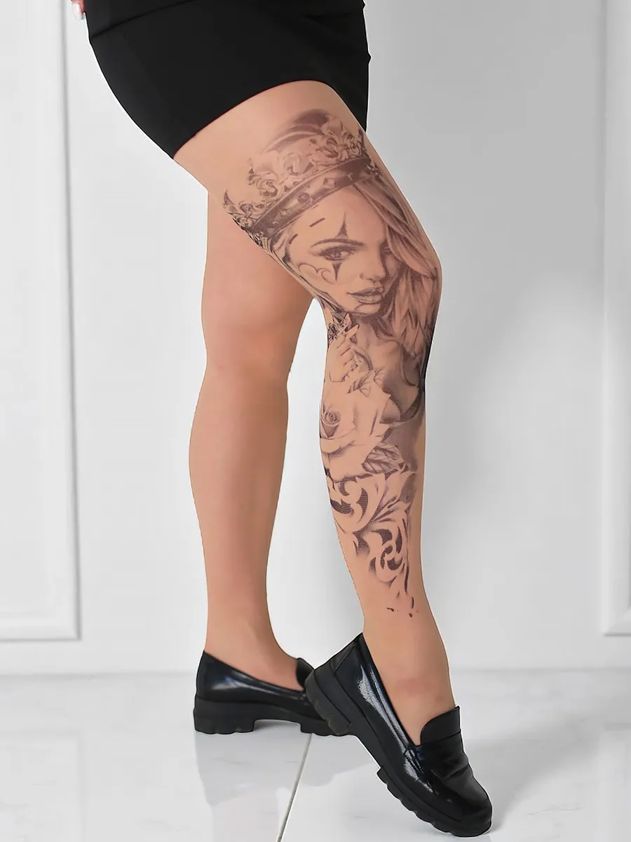 Колготки с принтом тату Королева от Art Lab — идеальный вариант для девушек, которые любят комбинировать стиль и комфорт. Эти колготки сделаны из мягкой и эластичной материи, которая будет чувствоваться комфортно даже в длительной носке. Принт тату Королева добавляет им индивидуальность и стиль, что делает их идеальными для повседневного ношения или как дополнение к вечернему наряду. Колготки подойдут для девушек, которые хотят выглядеть стильно и комфортно.