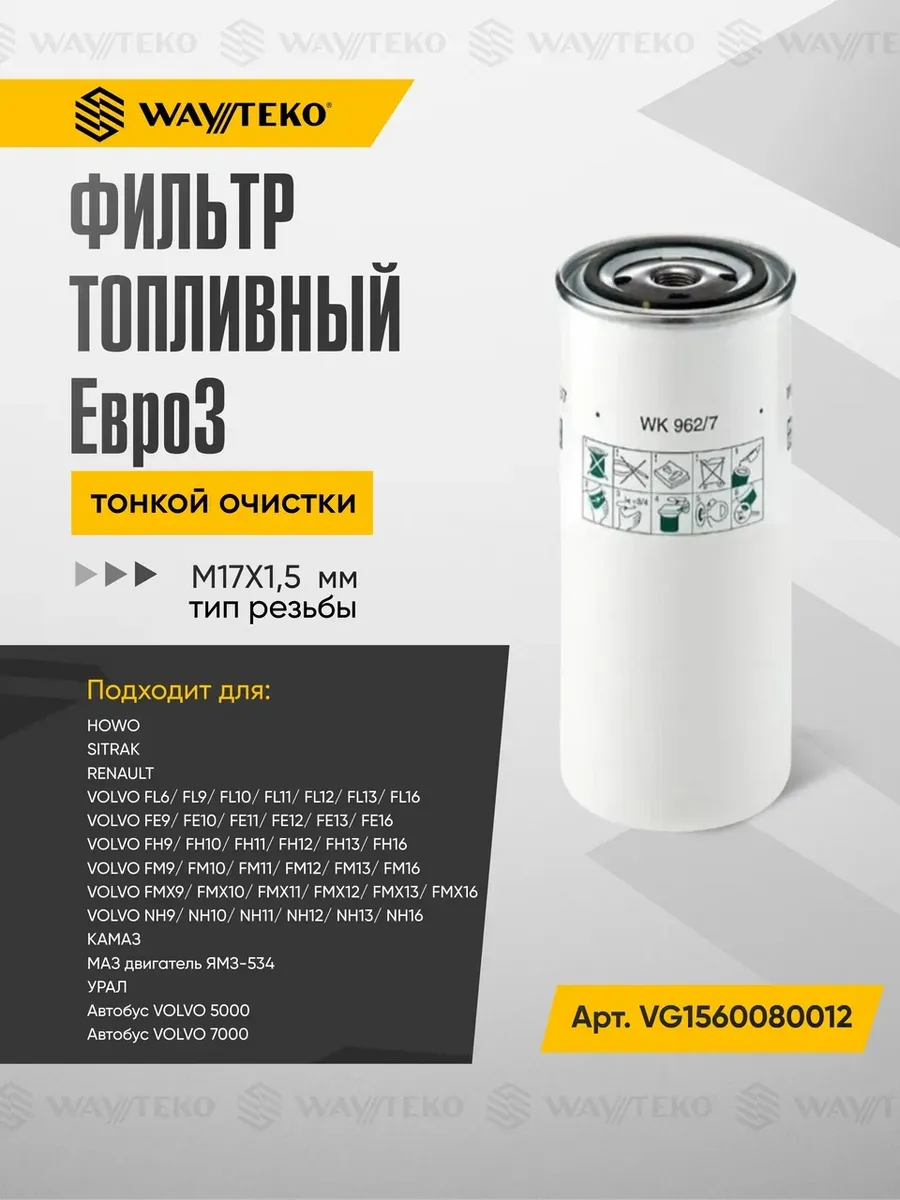 Фильтр топливный тонкой очистки Евро3, резьба M17x1.5 мм. WAYTEKO