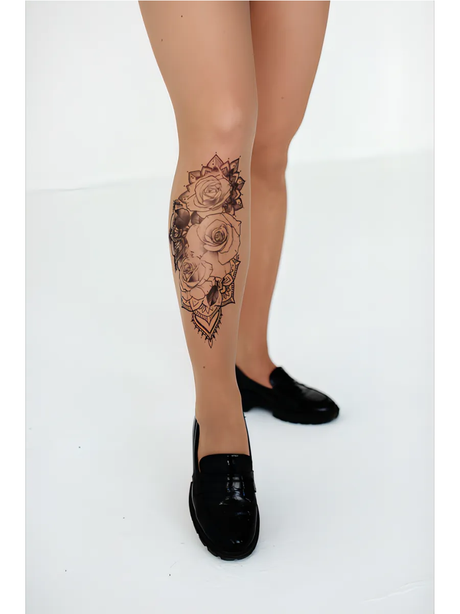 Колготки с принтом тату Розы. Art Lab