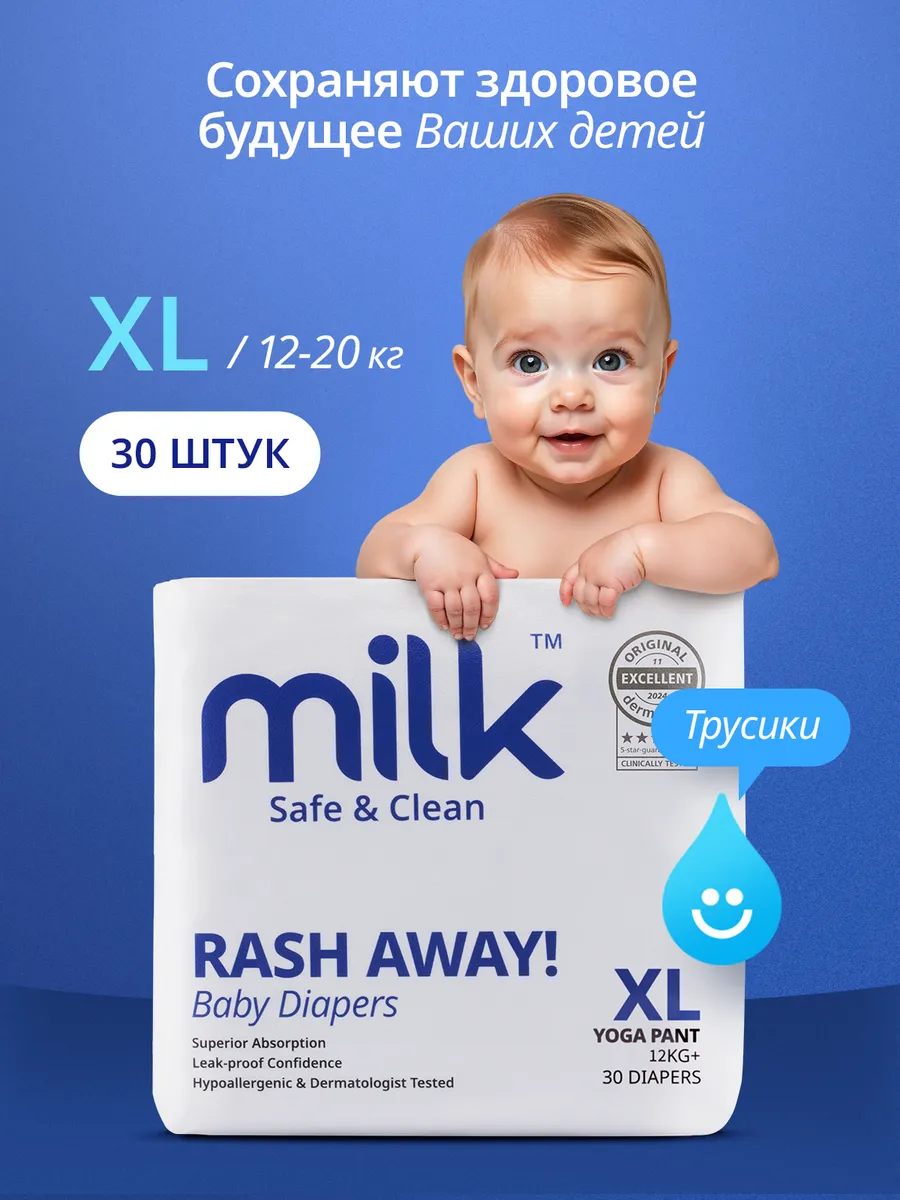 Подгузники-трусики MILK предназначены для комфорта и спокойствия малышей. Благодаря их уникальной конструкции, они обеспечивают сухость и защиту кожи, а также легко меняются в случае необходимости. Подойдут для детей weighing 12-20 кг.