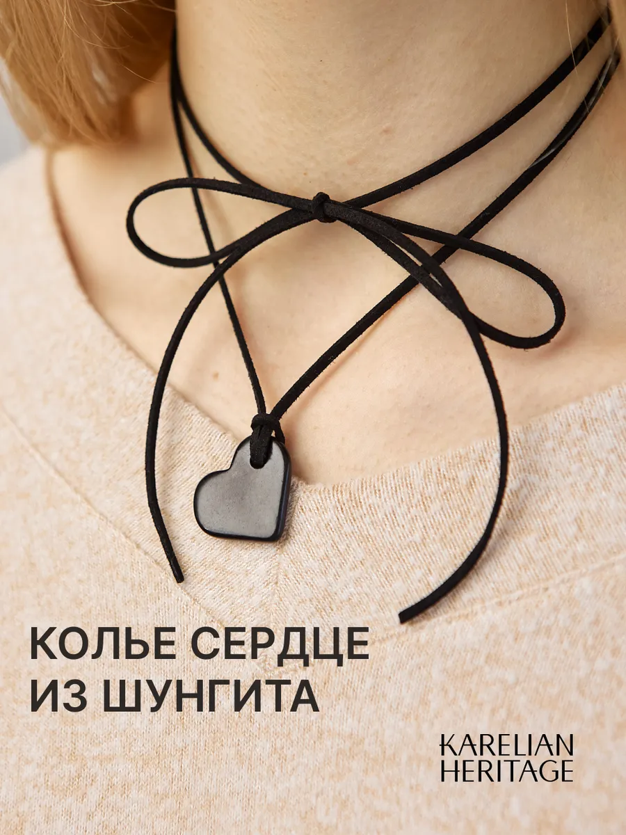 Подвеска колье Сердце с натуральным камнем шунгита. Karelian Heritage