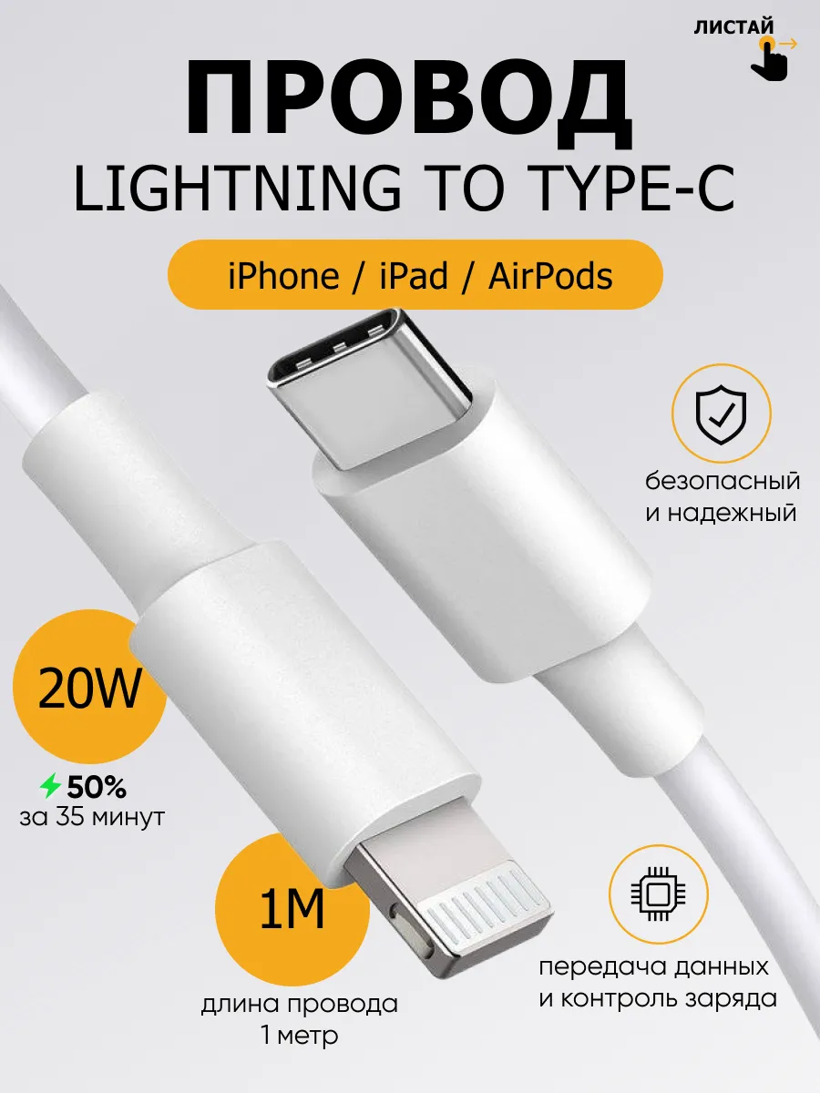 Провод быстрой зарядки для iPhone, Lightning to Type-C 20W. Gadget