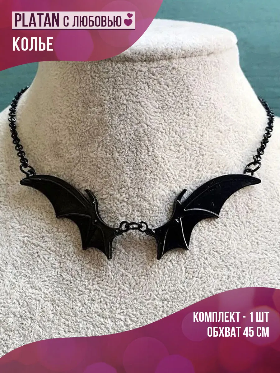 Цепочка колье с черными крыльями в готическом стиле. PLATAN С любовью