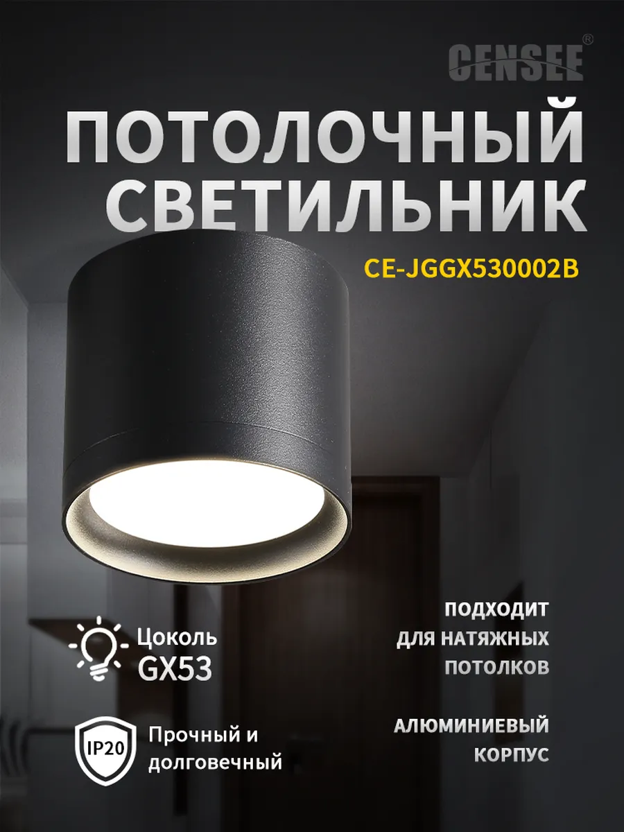 Накладные споты GX53 алюминиевые черные матовые 15Вт IP20. CENSEE