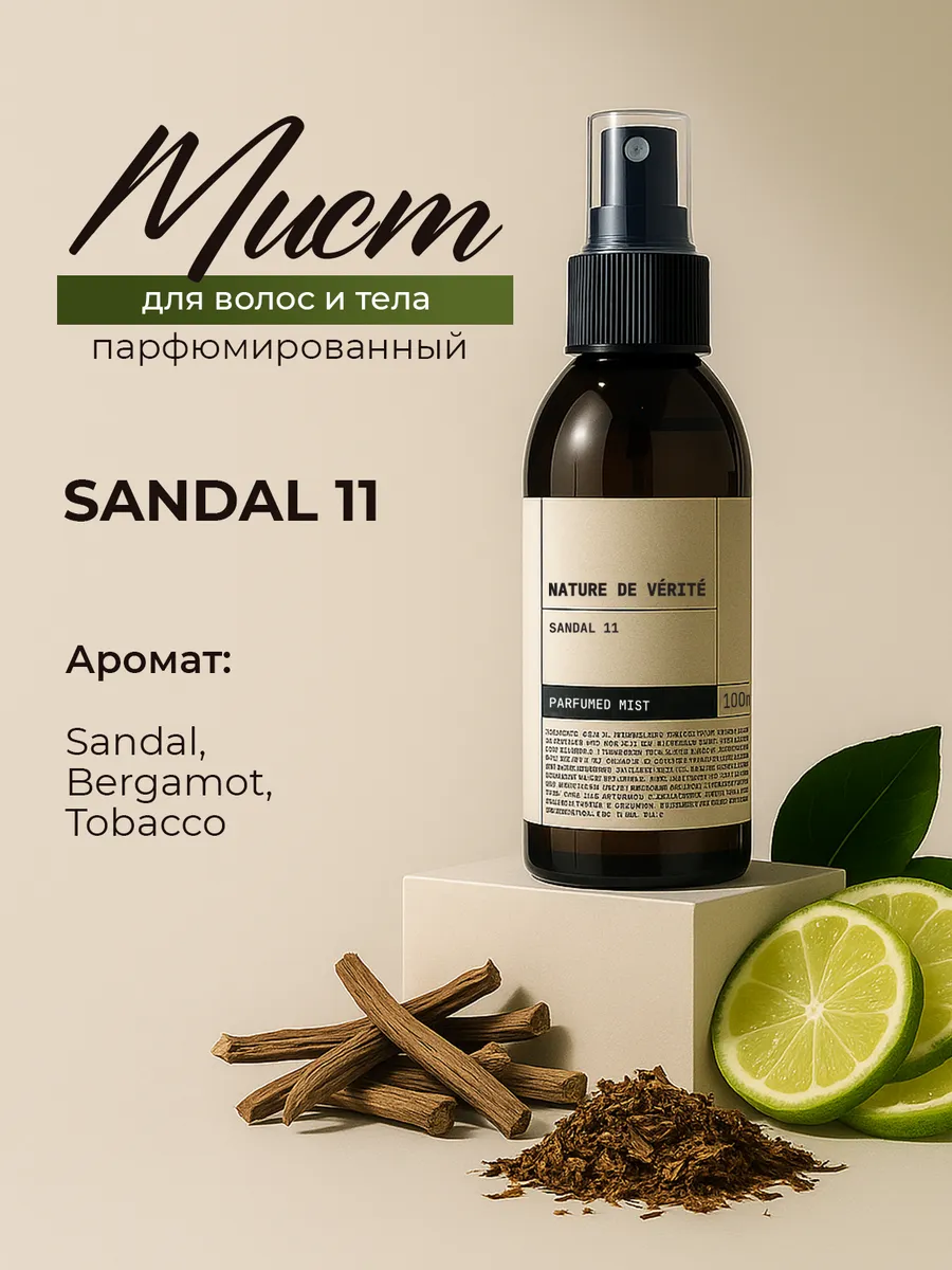 Парфюмированный спрей для тела NATURE DE VÉRITÉ SANDAL 11 от Eco Fabrika Profi — идеальный вариант для ежедневного ухода за телом. Он оставляет нежный, приятный аромат и увлажняет кожу. Препарат можно использовать для всех типов кожи. Подходит для женщин, которые ценят простоту и натуральность в уходе за телом.